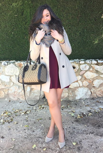 He elegido unos stilettos bajitos, pantys naturales, abrigo beige, bolso tipo bowling y como no! una bufamanta con un estampado precioso.